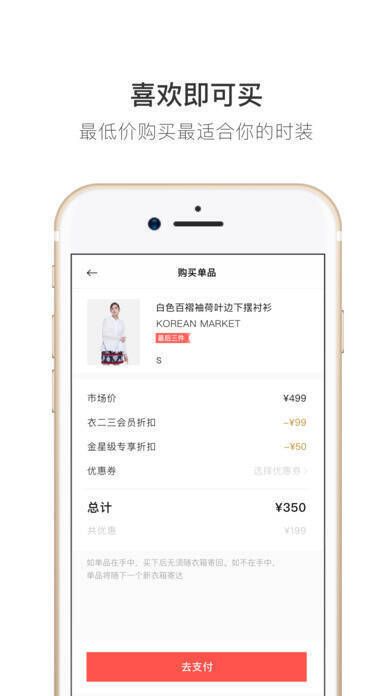 1、每月 499 元(首月 299 元)即可成为会员,用一件快时尚衣服的价钱,就能换穿一整月的大牌时装。