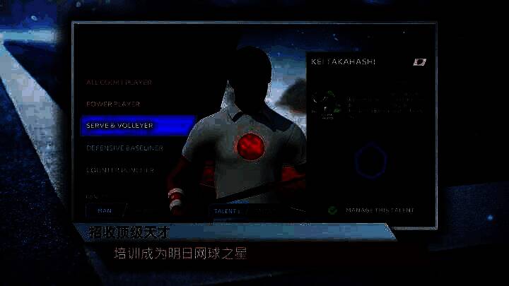 从网球学院训练的年轻球员中挑选未来之星,精心培养,使其在世界排名上不断前进。