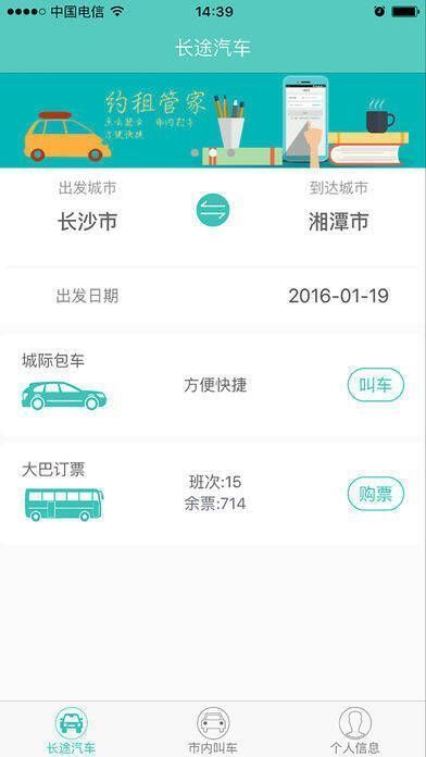 3. 湘约出行 APP 支持湖南省全省联网汽车票。