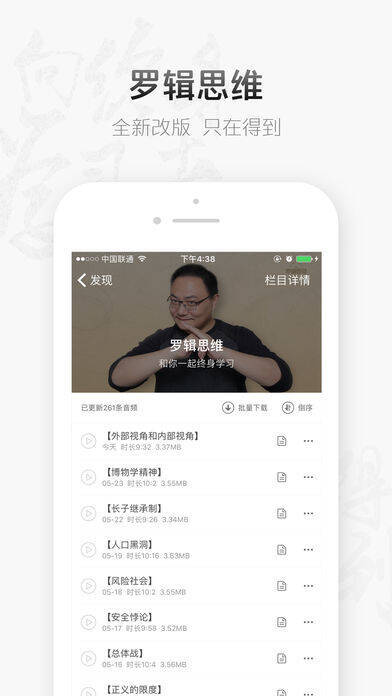 想提升自我却苦于没时间看书学习?快来下载《得到》APP!它为你提供丰富的知识视听服务,让你能充分利用碎片时间汲取高浓度知识。这款软件由罗辑思维团队精心打造,提供最省时的知识服务。在晨起、睡前、通勤路上,每天只需20分钟,就能快速获取知识。软件特色众多,有每天听本书、大咖专栏、李翔知识内参、罗辑思维、精品课等。v3.0.0版本还有诸多福利,如变身VIP享专属特权等。