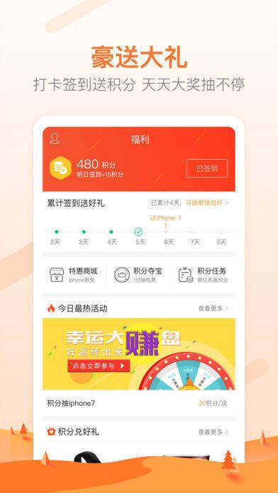 签到打卡赚取积分,海量超值礼品,还有刺激的夺宝活动,优惠福利让你兑到手软。