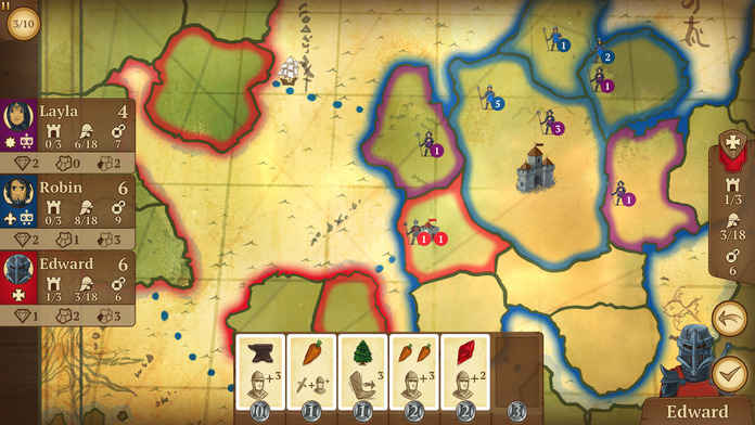 该游戏的玩法流程十分简单。你将和其他4名玩家一起,从展示的6张卡牌里进行选择。每张卡牌都会给予一定资源,同时会强制你采取相应行动。例如,“行动”可让你征服土地,“资源”则是决定最终胜负的累积点数。所以,你得深思当下哪种政策最利于帝国发展,因为获得的土地越多,最终获得的点数也就越多。《八分钟帝国》设置了三个等级的AI,还提供多人在线对战模式(涵盖异步交流与同步交流),玩法选择丰富。
