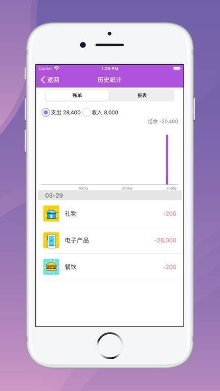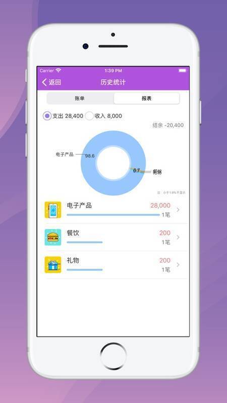 可将每一笔收支清晰记录在手机上,让用户清楚知晓钱的去向。