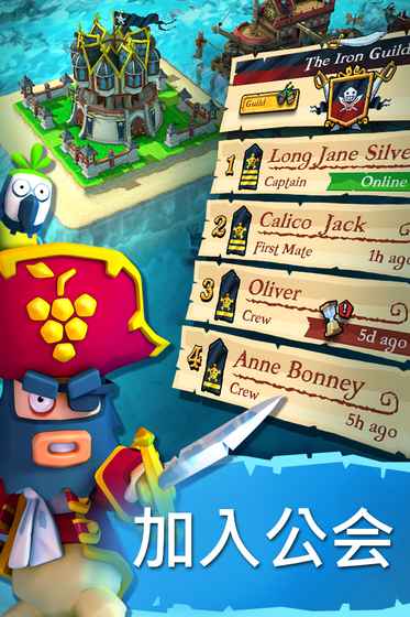 6、可与好友加入海盗公会,使用公会设施,在公会聊天室谋划建功立业。