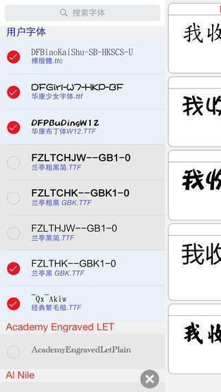 2、可通过iTunes共享或者电脑浏览器安装用户字体,支持.otf、.ttc、.ttf、.dfont等格式。