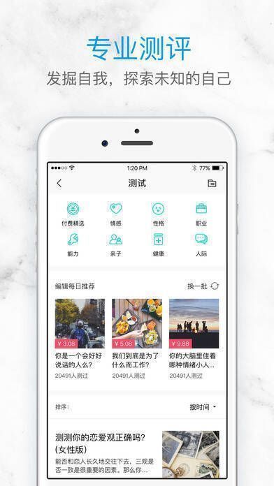 4、心理自助大餐:平台每天持续不断地提供心理学相关的文章、测试、课程、FM,让你可以学到最新鲜、最实用的心理成长知识和技能,每位用户也能获取他人的帮助或者帮助他人。