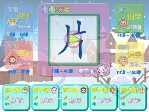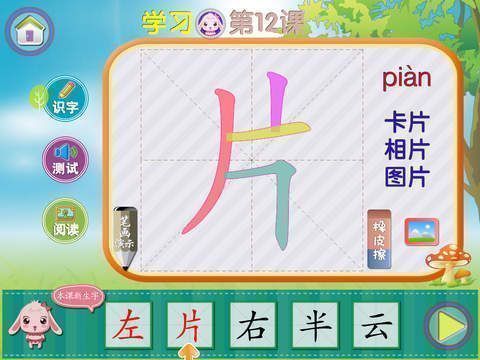 《趣趣识字第二册》是专门为3岁以上儿童设计的识字学习软件。该系列产品共有五册,总计涵盖800个汉字。软件具备学习、测试、复习三大核心功能,先通过展示笔顺、拼音,并让孩子手写的方式教导孩子写字,接着进行测试以检验孩子的掌握情况,最后开展复习,保证孩子牢记所学内容。