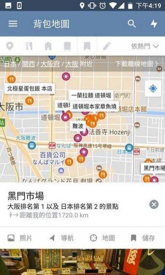 《背包地图》是一款专为你打造的掌上旅行计划制定服务APP。它不仅能帮你完善旅行规划,还能让你获取丰富的地理位置信息。你点击地图就能切换景点列表模式或全屏地图模式,还可搜索各类旅游地名,像台湾、日本、东京、大阪环球影城等,时刻掌握自身位置。