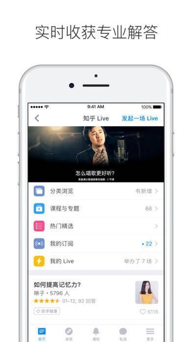 4、【知乎Live:实时收获专业解答】提供全新的实时语音互动问答体验。主讲人通过语音和图文形式,围绕主题分享精心准备的讲座内容,你可直接提问并获解答,往期Live支持直接购买,每天更新精彩内容。