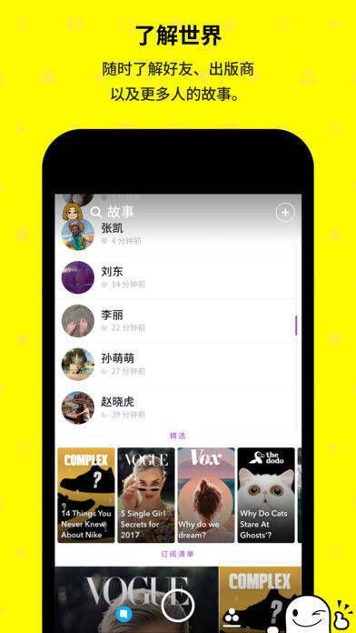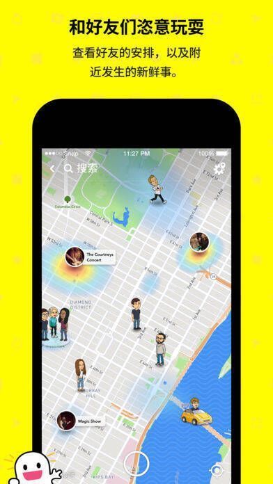 1、按住好友名字可观看他们的故事、发送Snap及进行其他操作。