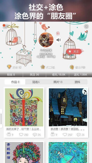 3、支持分享、关注、点赞、评论、私信、送礼等功能,让你涂色交友两不误;