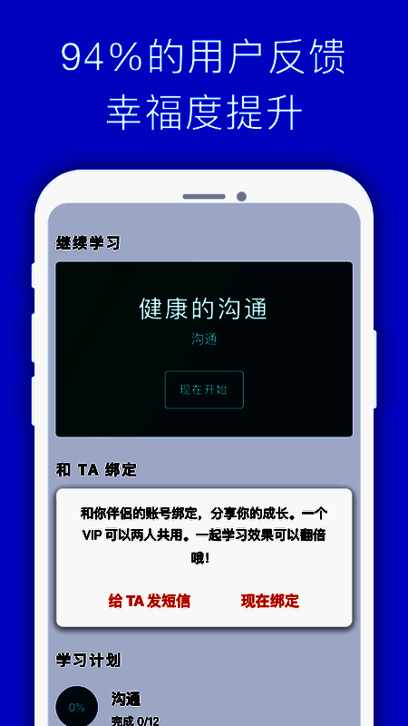 比翼鸟运用专业婚姻关系心理学的流程和理念,让你自助学习、反思和训练。你可以查看感兴趣的话题,与伴侣分享感悟,并在生活中运用。