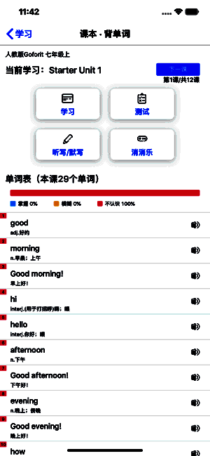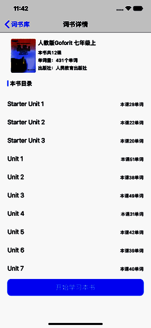 3、支持便捷查看词本详情,比如同步教材后,能查看本学期每一单元的学习内容。