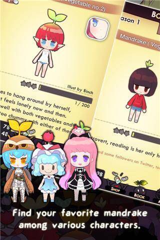 你永远无法预知收获时会得到哪种曼德拉草!今晚就用各种类型的风茄来填满你的字典吧!在不同性格的曼德拉草中,找到你最喜爱的那一款,比如充满异域风情的俏皮女孩,或是笨拙却火辣的护士。要是你已经收集齐所有风茄,还能挑战收集隐藏风茄,通过提升你的曼德拉草风茄主排名来达成。
