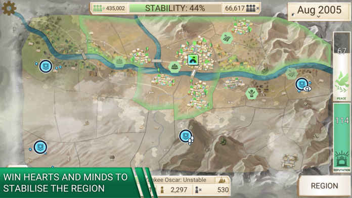 《Rebel Inc》是一款主打军事与政治题材的模拟类手游,它以策略经营玩法为核心,堪称“瘟疫公司”的精神续作。游戏从安保公司管理人员视角出发,讲述与国家势力合作维护当地治安的故事。玩家需合理制定政策、投入安保力量。