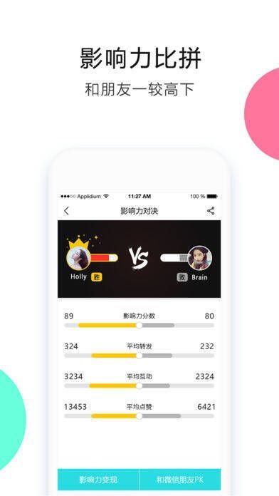 1、新增全新影响力功能,帮您测评社交账号影响力,还能和好友一较高下;