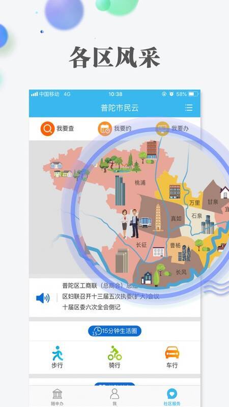 2、作为移动端公共服务客户端,入口清晰,轻松掌握各项事务,还能线上领略各区域风采。