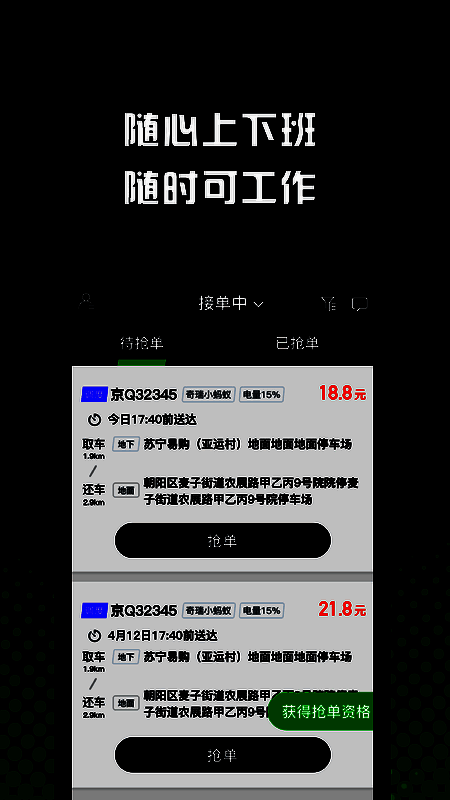 1、在GoFun众包上可在线查看抢单要求,完成资格认证就能抢单。