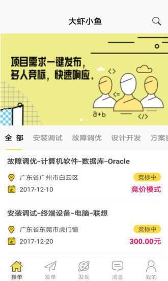 《大虾小鱼》立足珠三角地区,业务辐射全国,专注于 IT 行业。它搭建起 IT 服务需求方与技术提供方的桥梁,需求方在平台发布需求,工程师接单服务,验收完成后平台向工程师支付报酬,堪称您身边贴心的 IT 服务专家和工程师赚钱的得力帮手。