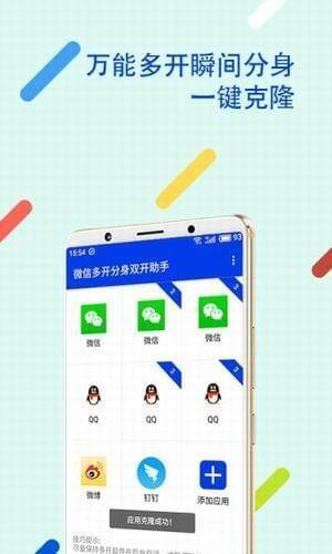 软件支持虚拟启动、手机多开、官方正版微信虚拟启动、快速无封号、桌面快捷等功能,能让一部手机实现两个甚至多个微信同时上线,有快捷方式和其他实用功能。
