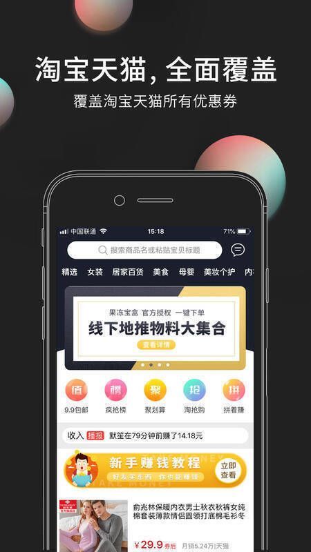 果冻宝盒 APP 是网购用户的首选,能让你在网购时省钱,分享还能赚钱。在这里赚到的钱,是省钱的 100 倍。