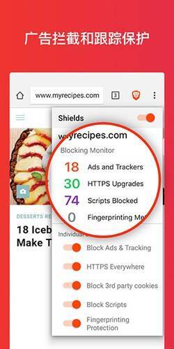 2. 高效广告拦截:强大的广告拦截器可迅速拦截恶意广告、跟踪器和弹窗,提升上网体验,减少流量与电池损耗。