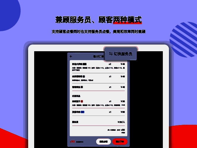 3、这个软件支持服务员使用点餐,也可以支持顾客点餐,两种使用模式;