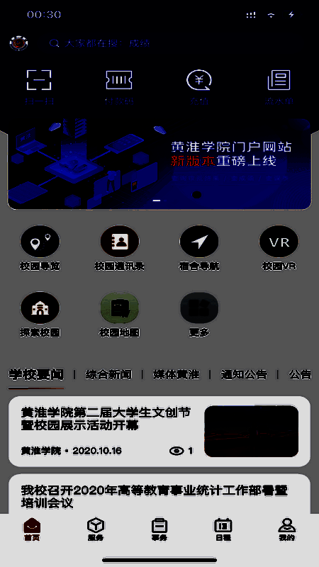 “云上黄淮,专属你的黄淮体验。《云上黄淮》是一款专为黄淮学院学生精心打造的校园服务软件。在这款软件里,你能第一时间掌握校园最新动态和政策变化。它拥有丰富实用的服务功能,像校园地图、通讯录、新闻等,等你来探索。
