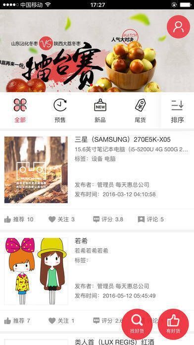 每天惠拥有丰富的线下资源和线上平台,涵盖30万家各类实体终端店以及惠易定(2B)、慧顾家(2C)等网上商城,采用预售、新品、尾货、试样等多种销售模式,但缺少优质商品。买手作为内部集采招商平台,面向采购部、分公司,不管是你和伙伴有好货,还是看中他人的货,都能进行采购、分销、转卖。