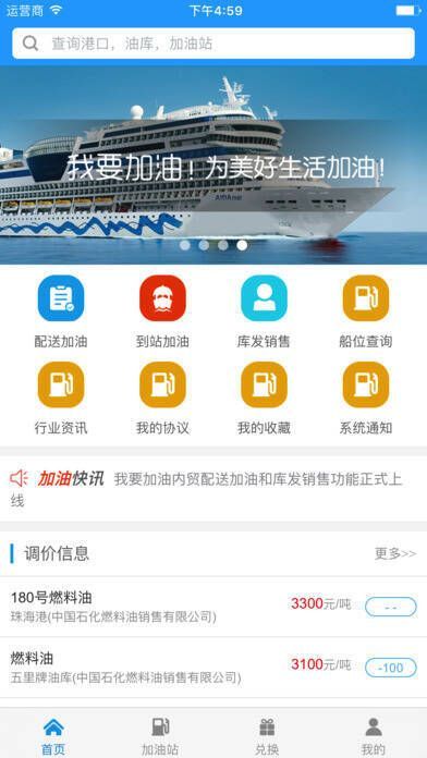 这款软件是为国内外广大船长用户打造的,以船加油业务为核心,聚焦于满足船舶航行和船员生活需求,致力于为船长用户提供一站式综合服务解决方案。它集成了“油品交易、船货信息、船舶物资、船员生活”等功能。