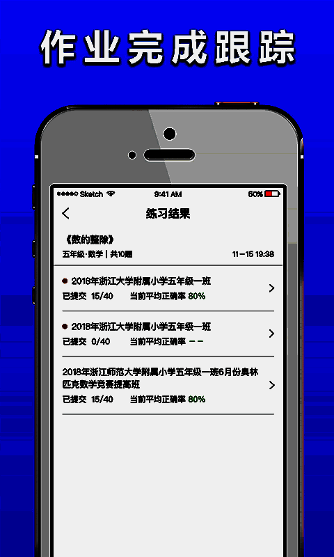 2、作业完成跟踪:及时掌握班级学生作业完成情况。
