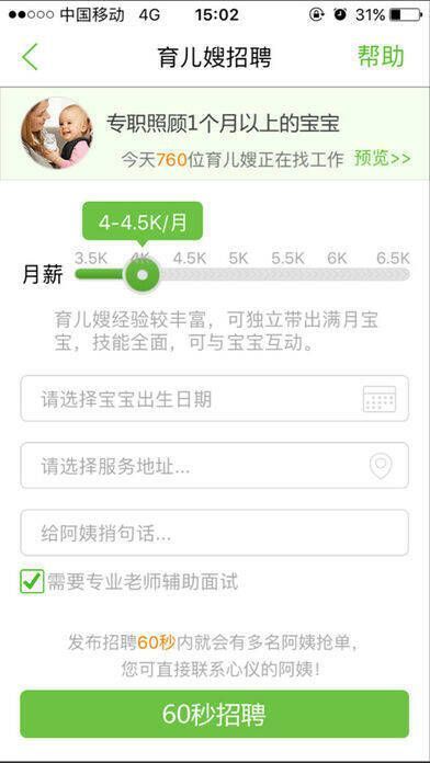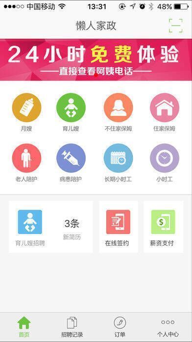 2、同时为阿姨和客服人员配备app客户端,让招聘、应聘、咨询和客服都有专属通道。