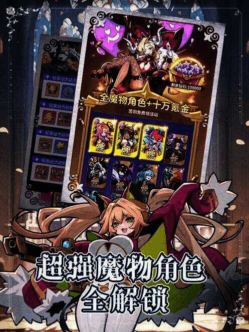 3、【超豪华魔王福利】:上线签到即领全魔物角色和10万钻,可爱反派角色登录带回魔王城!