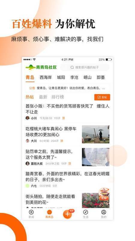 3、在青岛新闻网获取所需服务,了解本地新闻、最全行业资讯、最热论坛话题等。