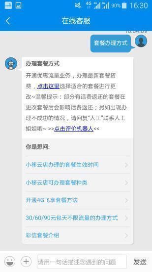 - 畅游移动商城:轻松办理4G套餐、移动数据业务、流量包等业务,还能选购多种时尚终端、配件,一键办理,畅享移动新体验。