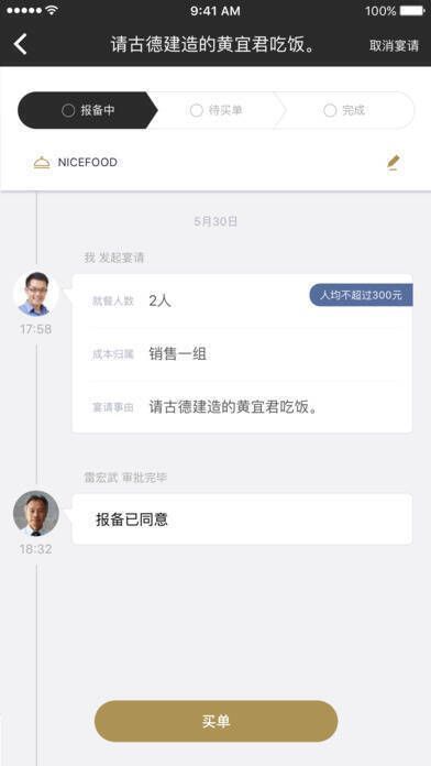 2. 从申请、审批到买单,均可在APP内高效完成。