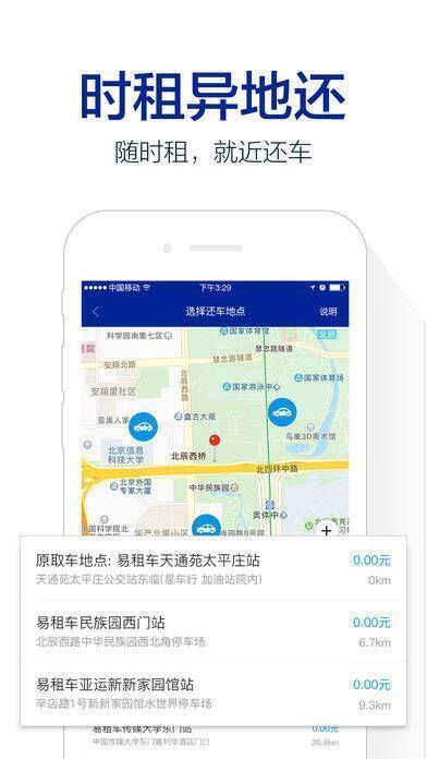 2、用户可利用 LBS 技术定位并预定距离最近的车辆网点,能即时预定,也可提前 15 分钟预定,全程用手机控制车辆,自助开启自由旅程。到达目的地后,把通利达共享车停在任意合法停车位,通过 App 完成费用支付即可。