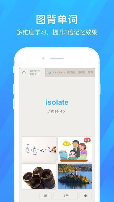 《百词斩》是一款非常实用的记背单词的手机软件,想要学好英语?苦于记不住单词?那快来试试这款软件吧,生动有趣的记忆方法会让你找到记单词的乐趣,从此不再担心记单词时的枯燥啦~!