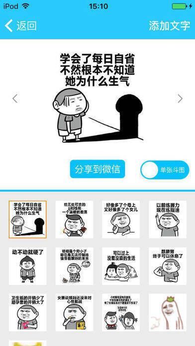 4、给表情添加文字:把想说的话添加到表情上吧,一键添加,动态表情会有动效文字;