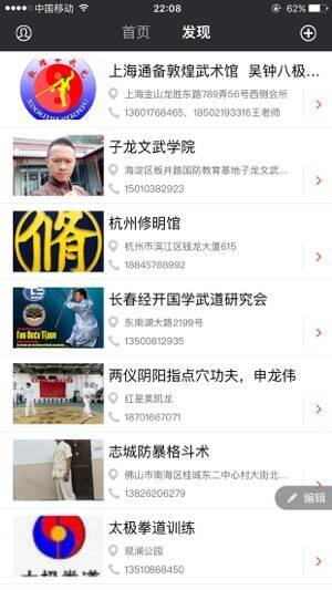 4、在此可以寻找功夫培训机构,定位自己的城市即可寻找本地场馆,在线可以查看各个场馆的详细信息,能过为选择场馆而提供信息服务。