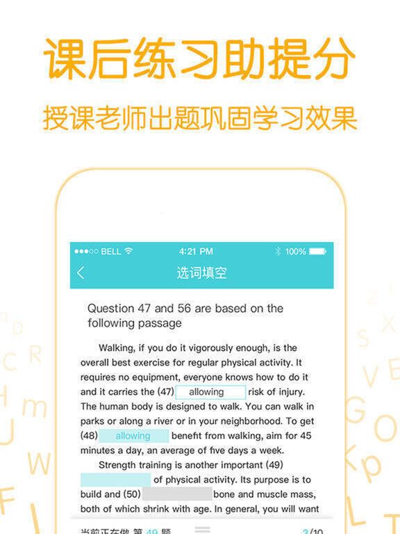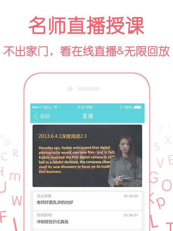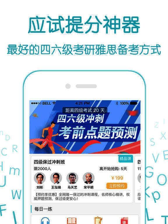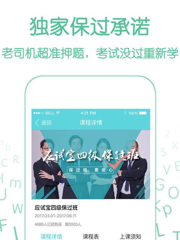 《应试宝》是最专业高效的大学英语四级英语六级、考研、雅思备考学习产品,为千万考生提供了完整高效的在线直播课程、题库配套练习、单词背诵讲解等多种提分方式,帮助考生轻松攻克难点弱项。