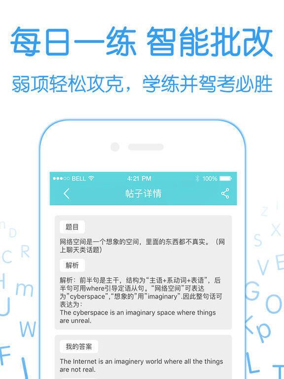 每日一练、课后练习、模考上线黑科技,写作翻译答后秒出自动点评。