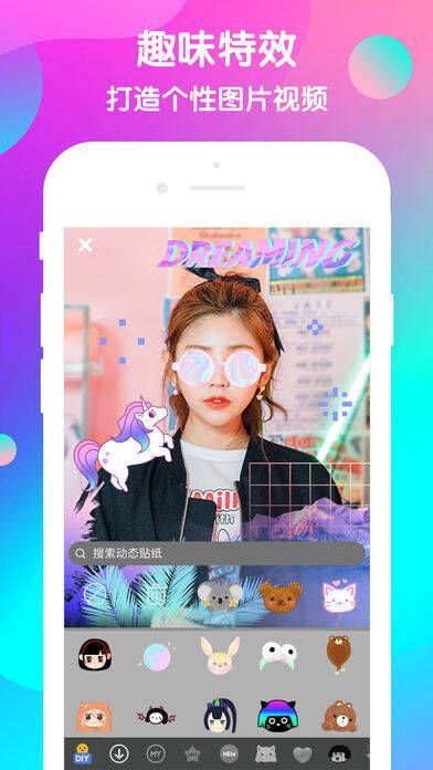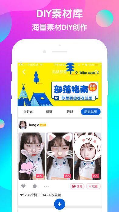 改图&翻拍:改图功能可一键套用贴纸特效模板,一秒P图,简单实用;翻拍功能能一键同步动态贴纸特效,分享乐趣无穷。
