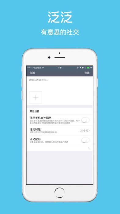 《泛泛》APP是一款社交类软件。它能通过精准定位,让用户查看周围同样使用该软件的人,还能在定位处设置带密码的房间进行激情聊天。