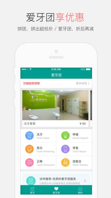 2、爱牙团:以团购形式降低口腔治疗价格,从便捷、安全、实惠等方面解决患者的根本问题。