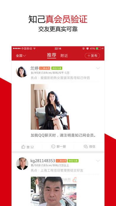 2、知己网专注异性交友15年,拥有3800多万注册用户。知己APP引进了国外热门交友应用的功能,并结合中国用户实际需求。