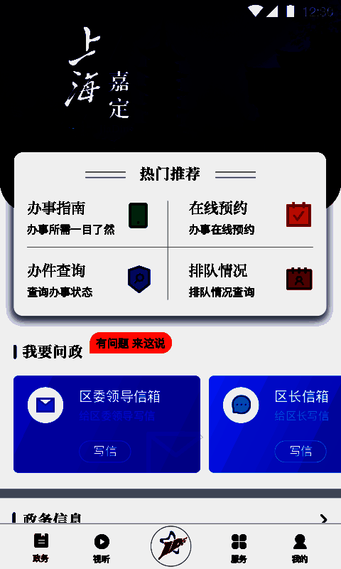 《上海嘉定》APP官方版是一款便捷的资讯生活服务应用,全新上线。用户能了解当下火热的资讯动态,还能进行公积金查询、各类税费的缴纳与查询,涉及生活方方面面。它拥有资讯、政务、服务三大生活服务版块,方便市民!