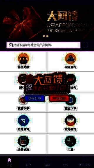 3、新增商场应用功能,为客户提供“自助下单、订单管理、运费核算、服务查询、礼品兑换、活动推广”等一站式掌上便捷快件服务。