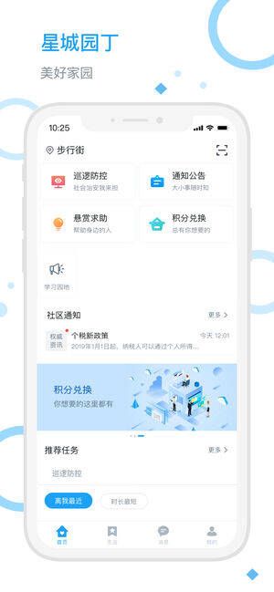 1. 巡逻防控:传统巡逻防控多由公安民警内部执行,而在“星城园丁”APP平台,大家可在“巡逻防控”模块领取任务,完成巡逻获取积分。