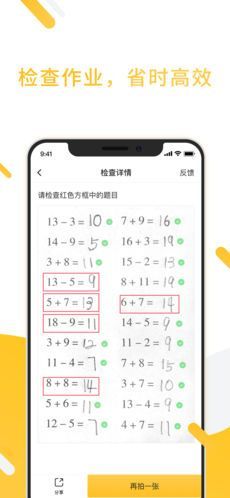 小猿口算能通过拍照检查口算题,1 秒即可得出结果,助力老师和家长更高效地检查孩子作业,支持四则混合运算、比较大小、带余数除法等多种题型。